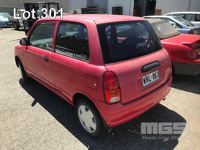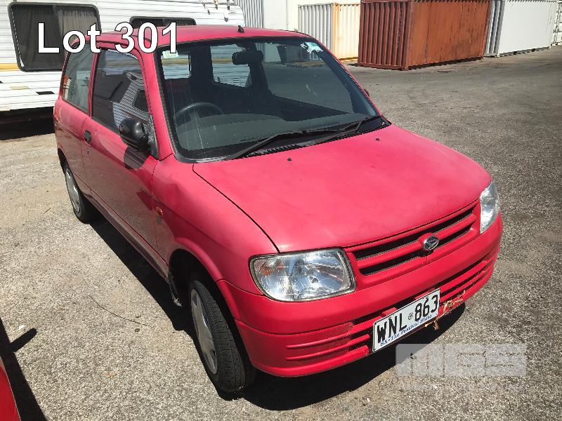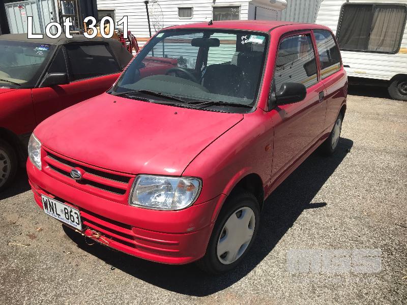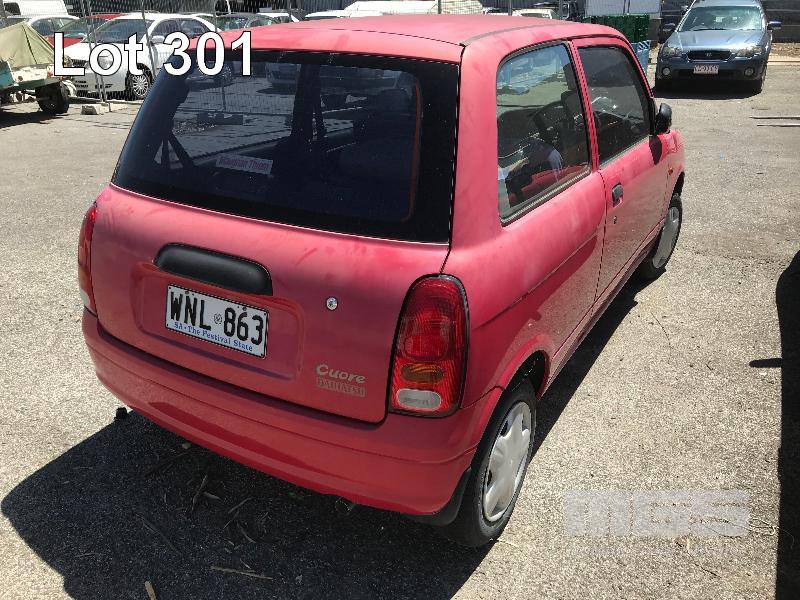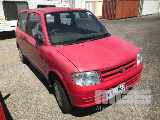 2000 DAIHATSU CUORE HATCH REG: WNL-863 (SA) VIN: JDAL701S001032386 ENG: 6390023 ODO: 4,936 KM INDICATED 4 CYL, 5 SPEED MANUAL, PETROL, RED, 3 DOORS, 4 SEAT, AIR BAG, AIR CON, CD PLAYER, CENTRAL LOCKING, SPARE WHEEL (NO PAPERS, NO KEYS, WITH OWNER'S MANUAL, WITH SERVICE BOOKS)