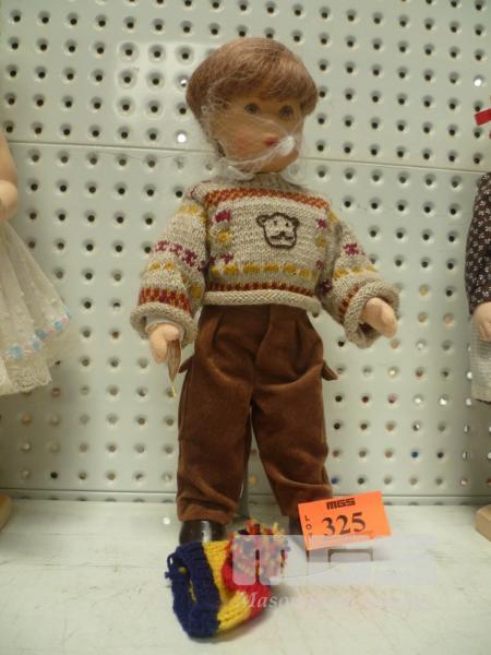 ORIGINAL KATHE KRUSE GERMAN PUPPE DOLL, YOUNG BOY ON STAND, DRESSED IN JUMPER, PANTS & SHOES