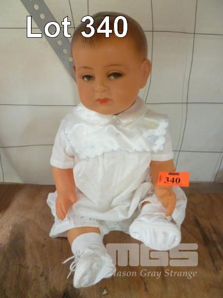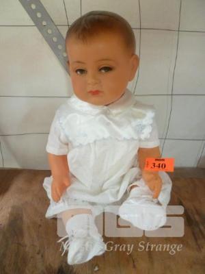 SNP VINTAGE BABY DOLL, FRENCH MADE WITH MOVING LIMBS IN LINEN DRESS & BOOTIES