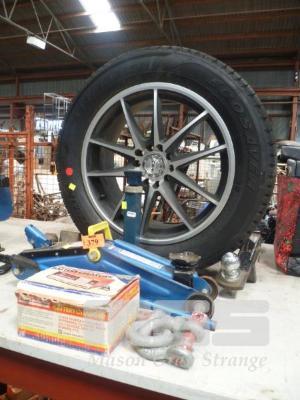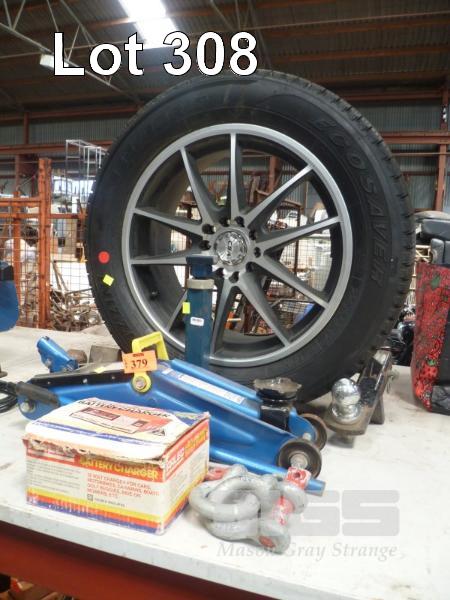 CSA ALLOY RIM, UNIVERSAL 10 STUD WITH ECOSAVER 225/60R17 TYRE, TROLLEY JACK, TOW BAR HITCHES, BATTERY CHARGER & D-SHACKLES