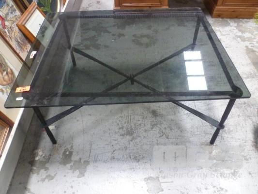 SQUARE COFFEE TABLE, METAL FRAME, GLASS TOP