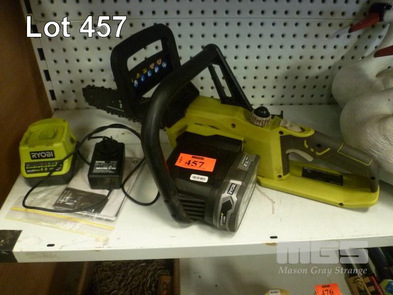 RYOBI CORDLESS CHAINSAW, CHARGER & BOOKLET