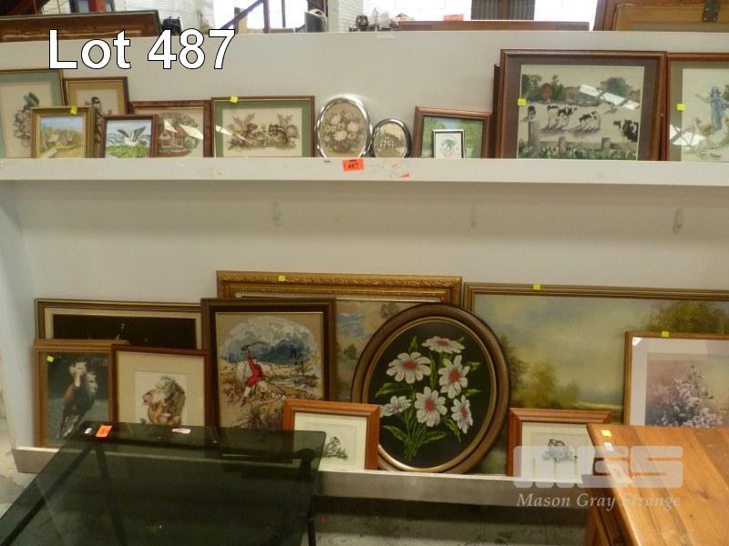 ASSORTED FRAMED TAPESTRIES & PRINTS, 2 x TIERS