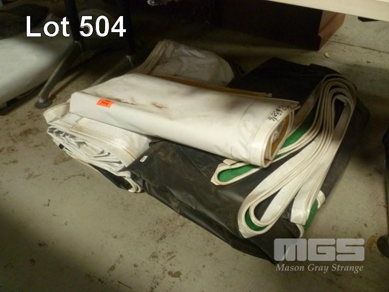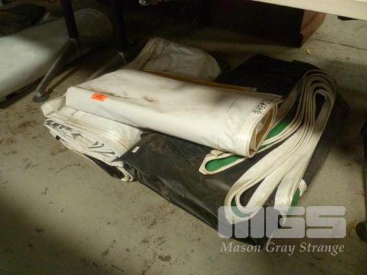 5 x ASSORTED, HEAVY DUTY ADVERTISING TARPS, UNKNOWN SIZES
