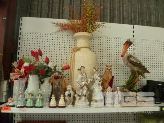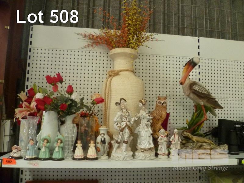 SPOONBILL BIRD, FIGURINES & ASSORTED VASES