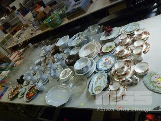 ASSORTED GLASSWARE, DINNERWARE, BOWLS, ETC INC ROYAL ALBERT, OLD COUNTRY ROSE, 1 x TABLE