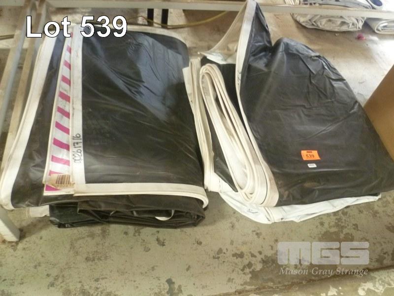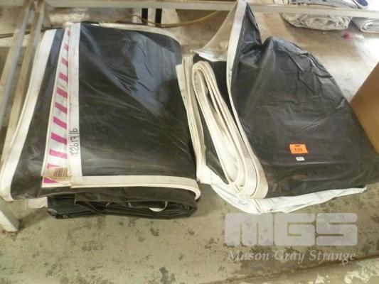 5 x ASSORTED, HEAVY DUTY ADVERTISING TARPS, UNKNOWN SIZES