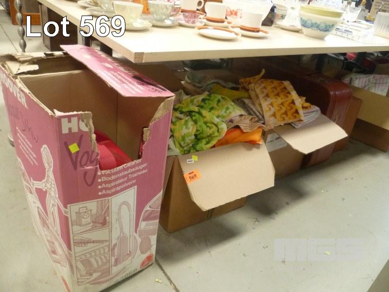 ASSORTED TOWELS/BEDDING, SUITCASES & HOOVER VACUUM