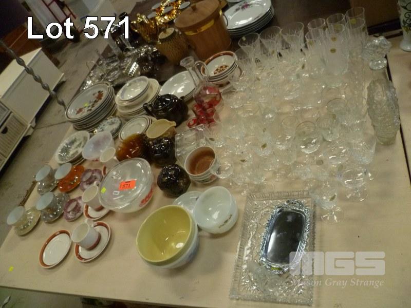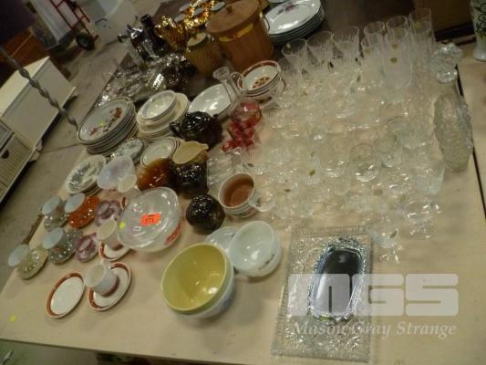 ASSORTED CRYSTAL, GLASSWARE, DINNERWARE, ETC