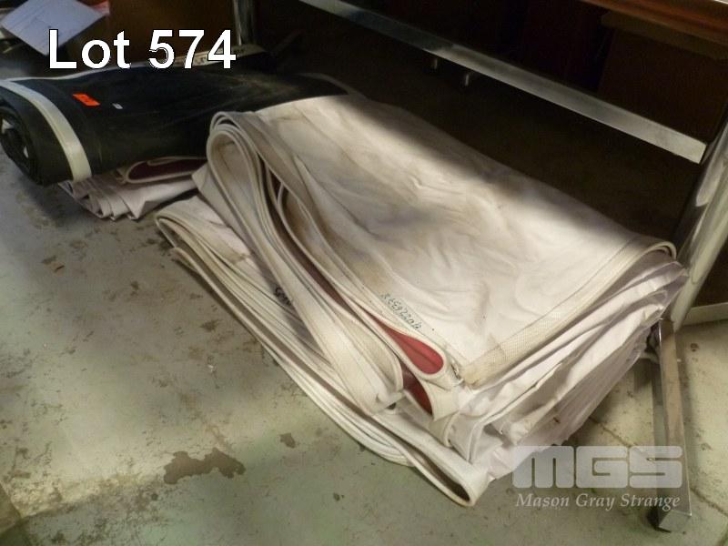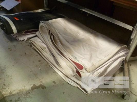 5 x ASSORTED, HEAVY DUTY ADVERTISING TARPS, UNKNOWN SIZES