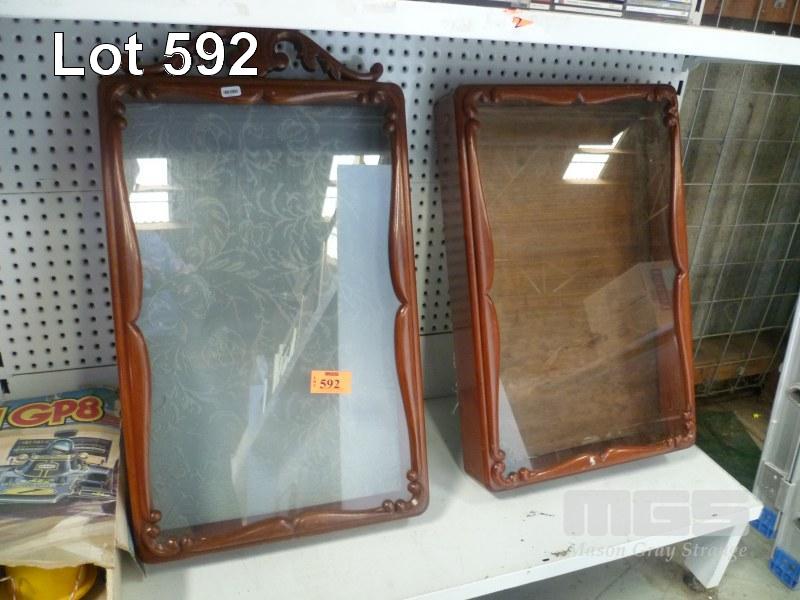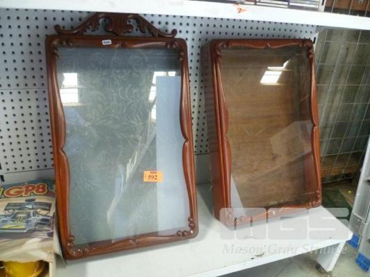 PAIR MAHOGANY MID CENTURY WALL MOUNT DISPLAY CASES