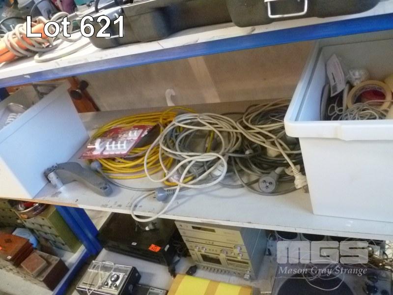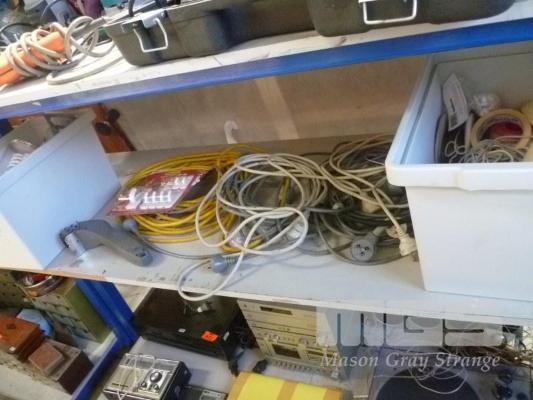 ASSORTED ELECTRICAL, EXTENSION LEADS, GLOBES, ETC