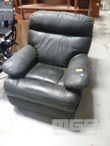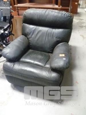 BLACK VINYL UPHOLSTERED RECLINER ARM CHAIR