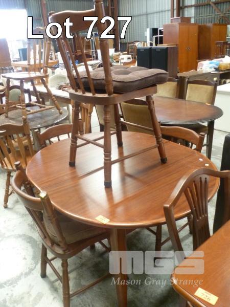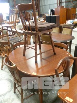 TIMBER 5 PIECE DINING SUITE INC OVAL EXTENSION, TIMBER VENEER TABLE & 4 x SPINDLE BACK CHAIRS