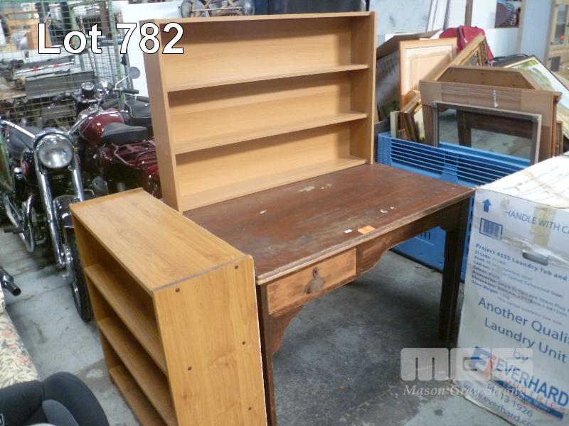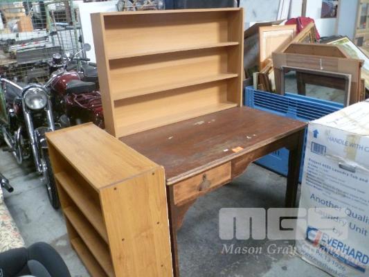 CHERRYWOOD TABLE & 2 x BOOKSHELVES