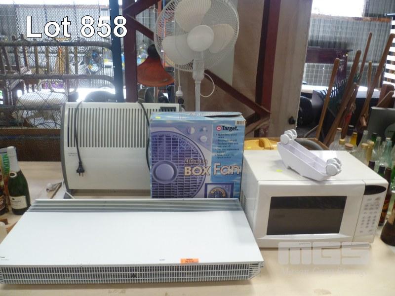 NOIROT WALL HEATER, SAMSUNG MICROWAVE, VACUUM, FANS & HEATERS, 1 x TABLE