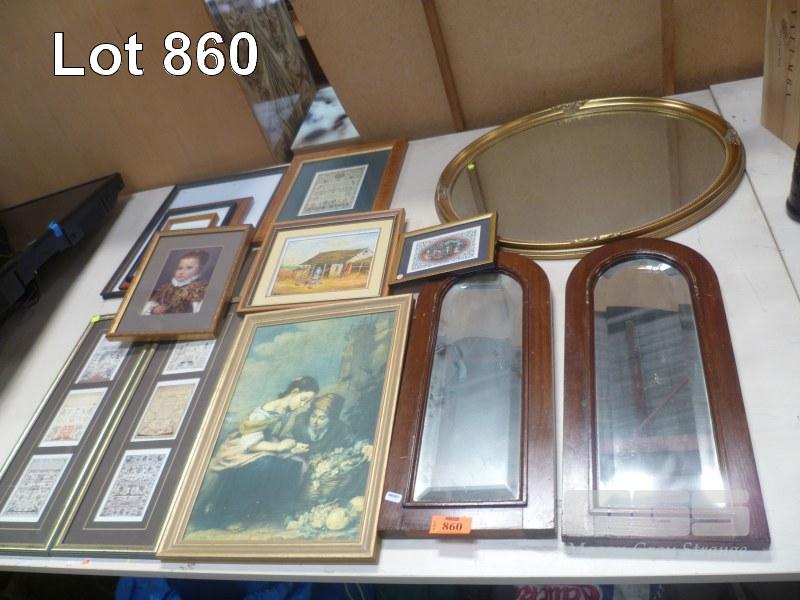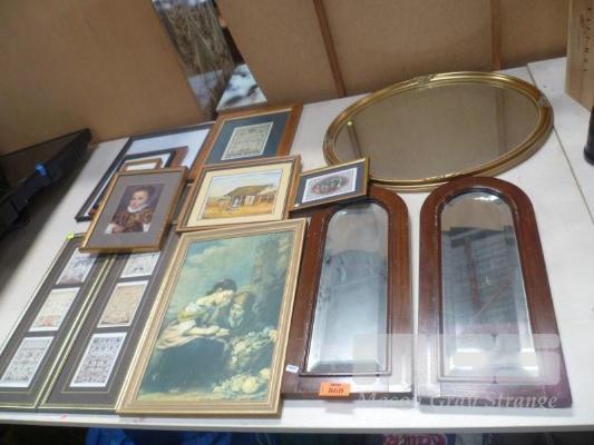 ASSORTED FRAMED PRINTS, MIRRORS & PICTURE FRAMES