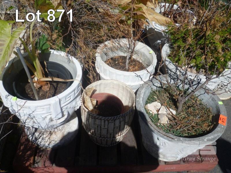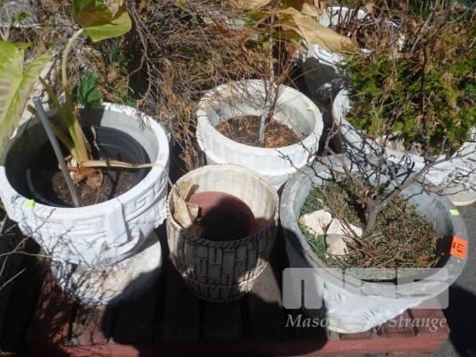 ASSORTED CONCRETE POTS WITH PLANTS, (SOME DIDNT MAKE IT), 1 x PALLET