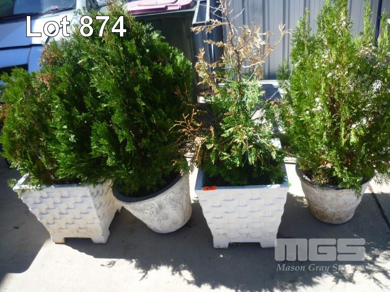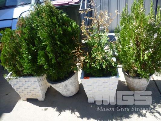 4 x CONIFERS IN CONCRETE POTS