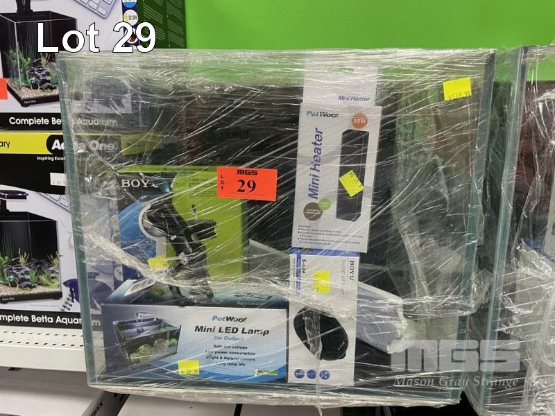AQUARIUM, CUBE GLASS, 40 x 40 x 35cm (8mm) COMPLETE WITH FILTER, AIR PUMP, HEATER & LED LAMP APPROX RRP $280
