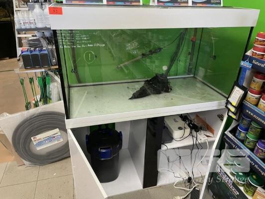 LARGE AQUARIUM, AQUA ONE, 1200mm ON WHITE CABINET COMPLETE WITH OCEAN FREE HYDRA FILTER, HEATER, ETC (DISPLAY MODEL,USED) GUESS RRP $1200 ???