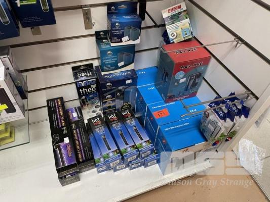 ASSORTED ACCESSORIES, 4 x SMALL FILTERS, 3 x BUBBLE LED LIGHTS, 8 x HEATERS, ETC