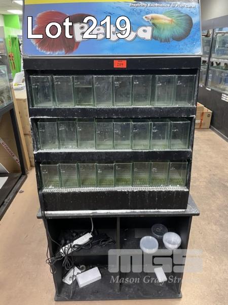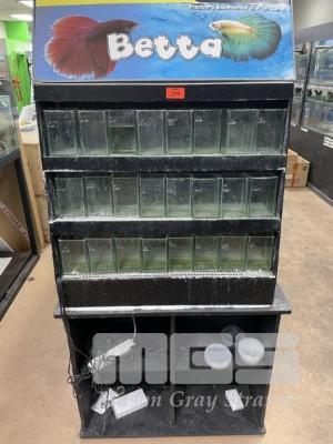 SIAMESE FIGHTING FISH DISPLAY, HOLDS 24 x FISH, 160 x 90 x 30cm WITH ADDITIONAL SHELVING BELOW