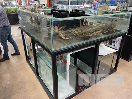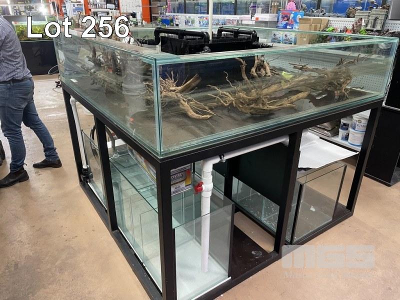 HUGE CUSTOM MADE SQUARE RAISED AQUARIUM, 180 x 180 x 40cm, 2 x MULTI COMPARTMENT FILTRATION TANKS ULTRA VIOLET WATER TREATMENT UNIT, NOT INCLUDING WOODEN DECORATIONS) HEAVY & HARD TO REMOVE !