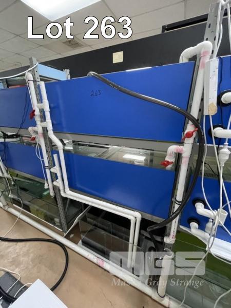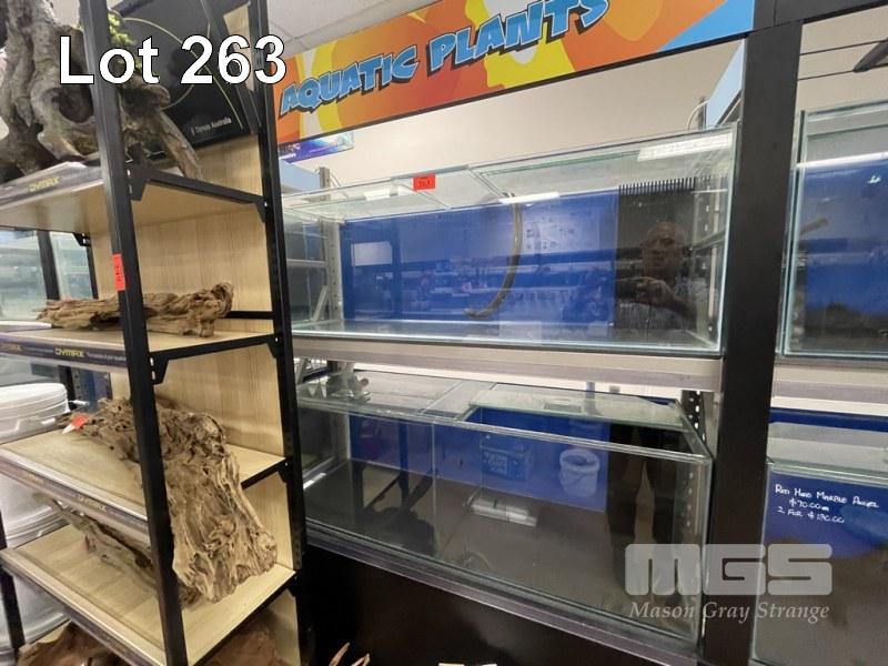 2 x COMMERCIAL AQUARIUM DISPLAY TANKS WITH LIDS 1 x SINGLE COMPARTMENT, 1 x DUAL COMPARTMENT COMPLETE WITH REAR FILTRATION TANK & 2 x INTERNAL FILTERS