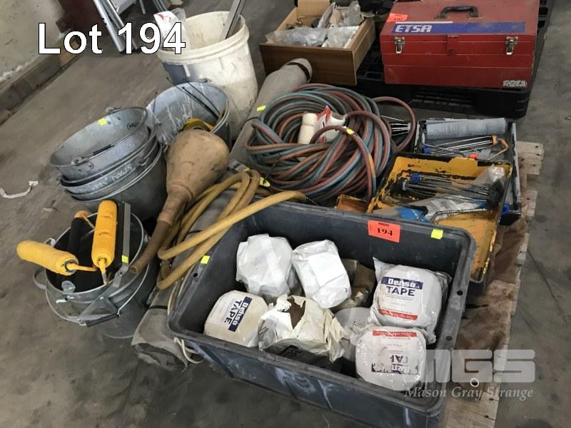 DENSO TAPE, 12 x ROLLS, OXY ACETYLENE HOSE, STAINLESS STEEL MESH, PAINT ROLLERS & TRAYS, ETC, 1 x PALLET