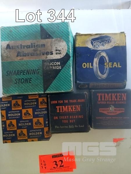 NEW OLD STOCK PARTS IN ORIGINAL BOXES INC HOLDEN, TIMKEN, REPCO OIL SEAT & SHARPENING STONE