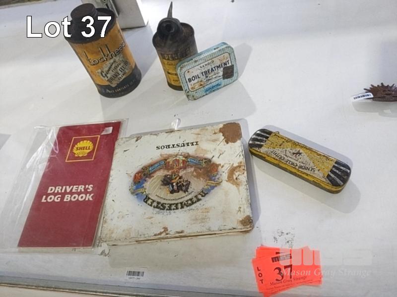 CAR/OIL RELATED TINS INC LOCKHEAD, PENETRENE, NEW OLD STOCK SHELL LOG BOOK, ETC
