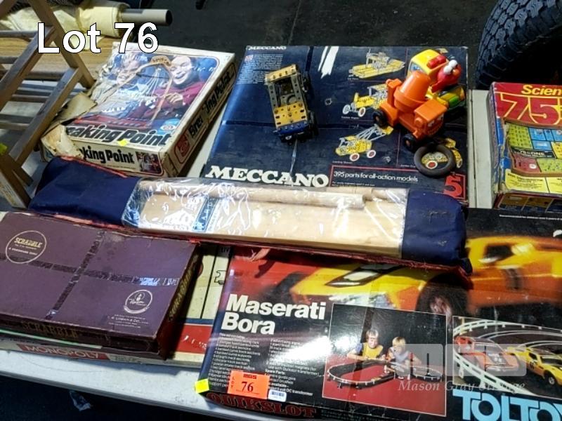 MECCANO, SCRABBLE, TOLTOYS, MASERATI BORA SET, UNO, MONOPOLY, ETC