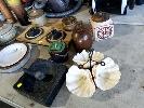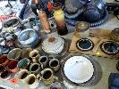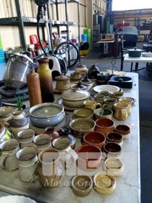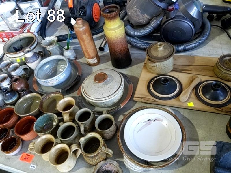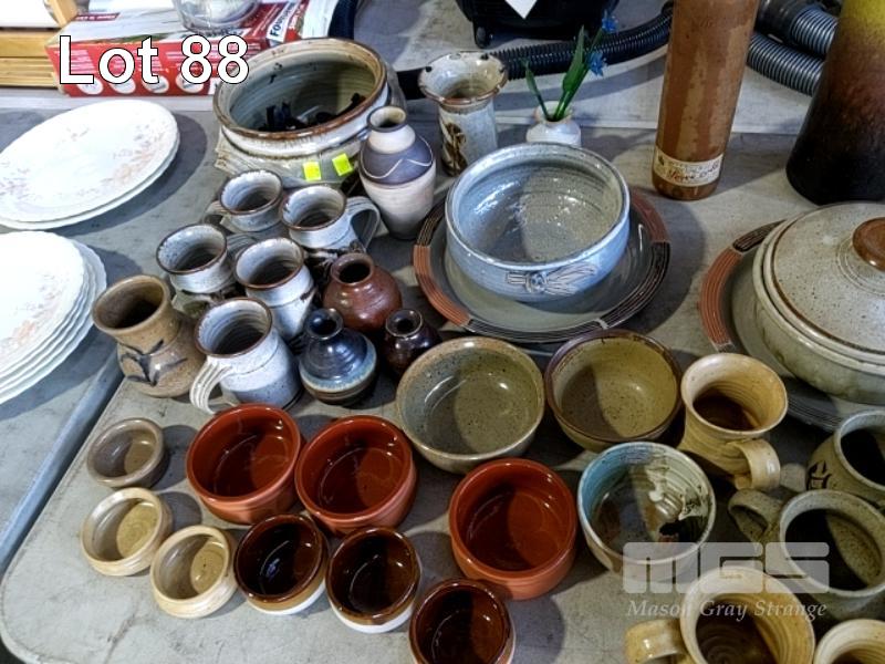 ASSORTED POTTERY, CUPS, PLATES,BOWLS, ETC, 1 x TABLE