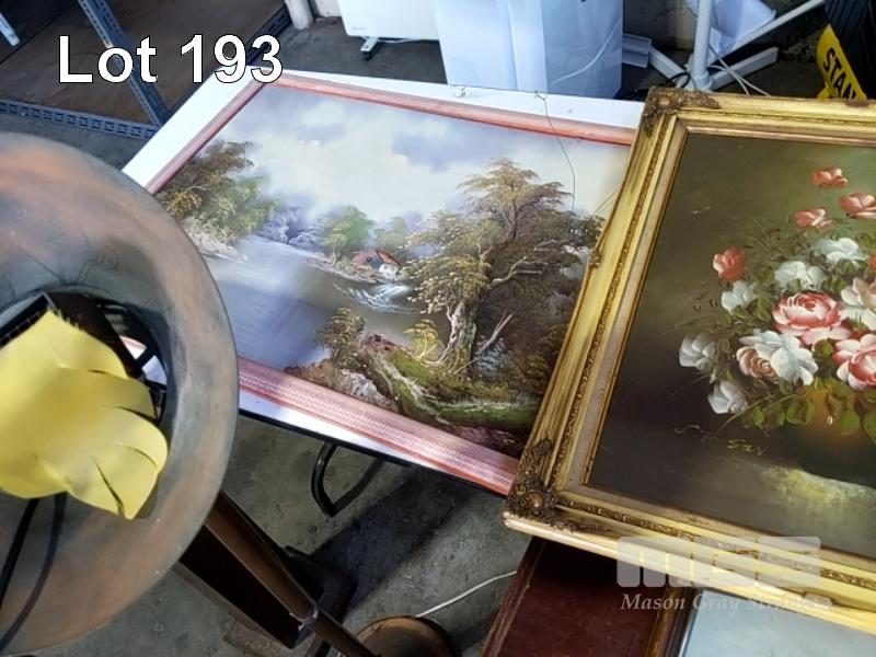 ENTERTAINMENT UNIT, TIMBER POT STAND, FRAMED PRINTS, LAMP ETC.