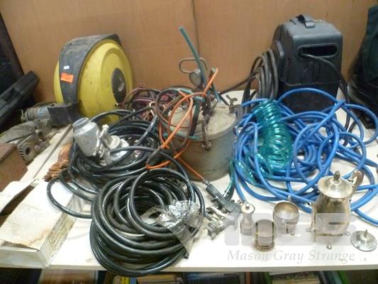 2 x RETRACTABLE AIR LINES, SPRAY POT, ETC 1 x TABLE