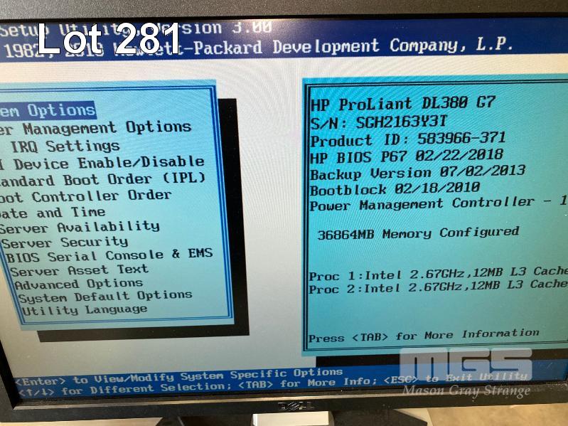 RACKMOUNT SERVER, HP PROLIANT DL380 G7, 2U, 2 x XEON X5650 @ 2.67GHz, 36GB ECC DDR3 RAM, 2 x 146GB SAS HDD, DVD-RW, FIBRE CHANNEL, 2 x PSU S/N:SGH2163Y3T