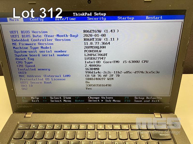 LAPTOP, LENOVO THINKPAD T460 (20FMS0QJ0H), CORE i5 6300U (6TH GEN) @ 2.4GHz, 16GB DDR3 RAM, 256GB SSD, 14" WIDESCREEN (1920x1080), INTEL HD VIDEO, Wi-Fi, BLUETOOTH, WINDOWS 10 PRO INSTALLED & POWER SUPPLY (NOTE: DAMAGE TO CASING) S/N:PC0HS0LW