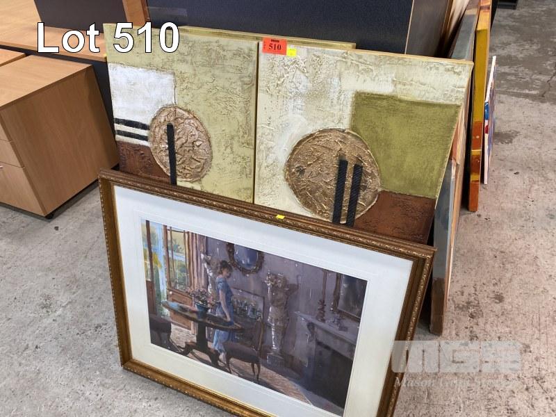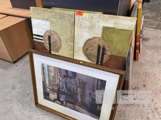3 x CANVAS PAINTINGS & FRAMED PRINT