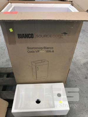 CERAMIC SIDE MOUNT BASIN & SINGLE DOOR VANITY, 2 PACK WHITE 460 x 225 x 880mm (H)