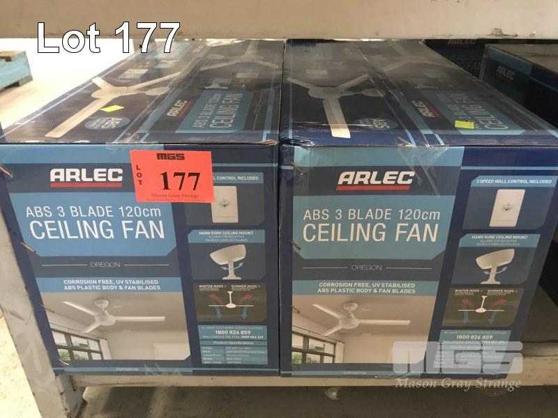 2 x CEILING FANS, ARLEC ABS 3 BLADE, 120cm
