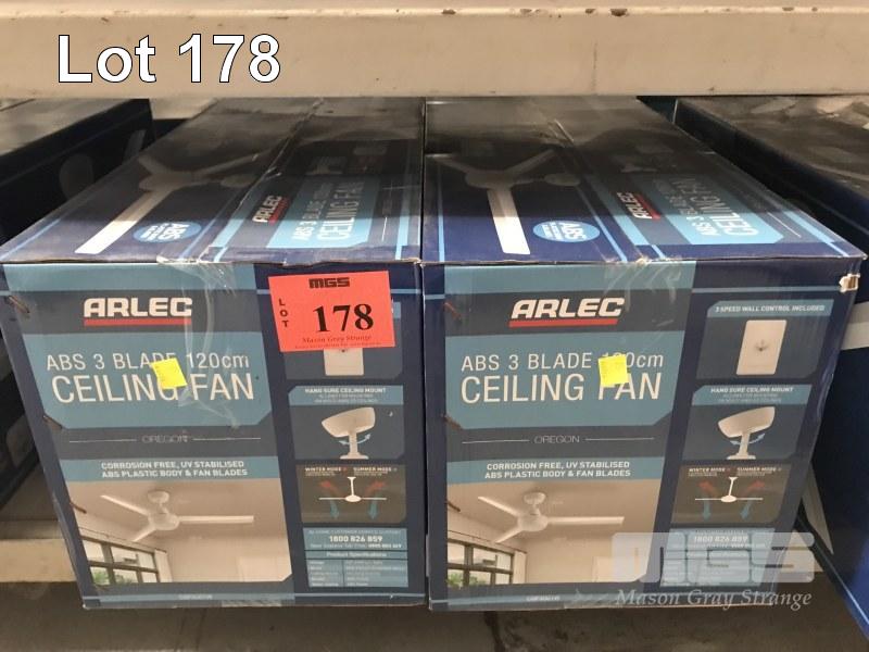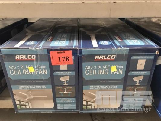2 x CEILING FANS, ARLEC ABS 3 BLADE, 120cm