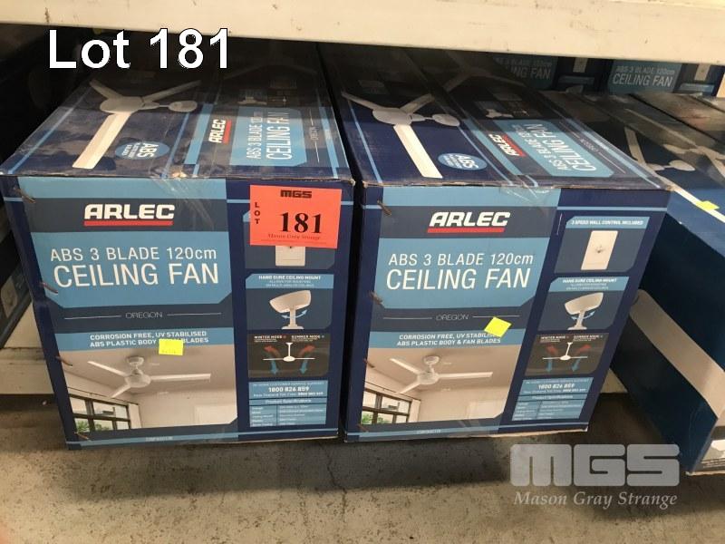 2 x CEILING FANS, ARLEC ABS 3 BLADE, 120cm