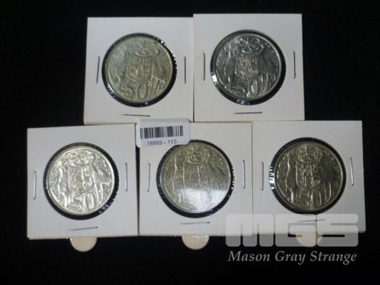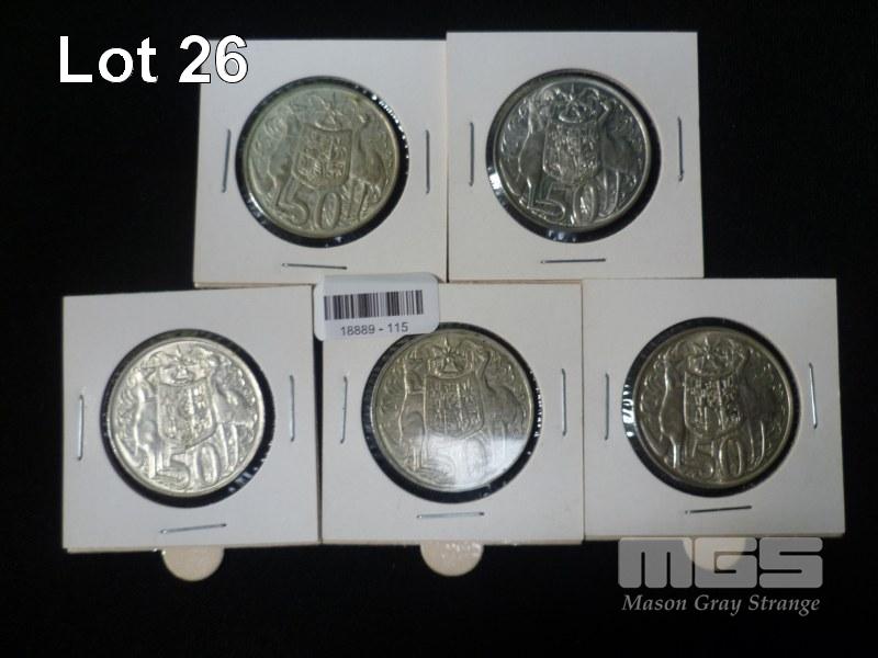 5 X 1966 AUSTRALIAN ROUND 50 CENT PIECES