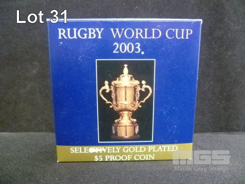 2003 $5 1 TROY OZ "WORLD CUP SELECTIVELY GOLD PLATED" PROOF SILVER COIN