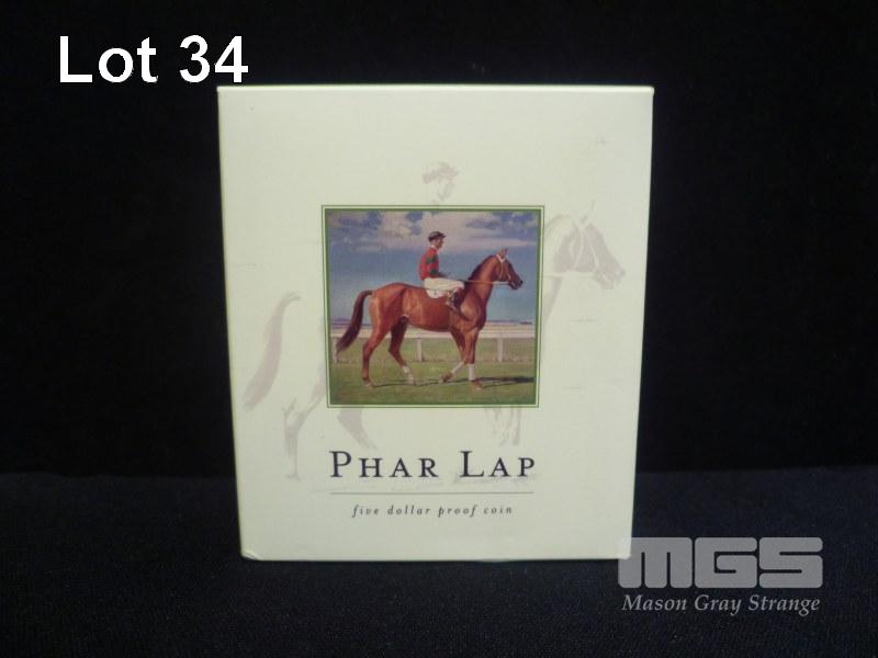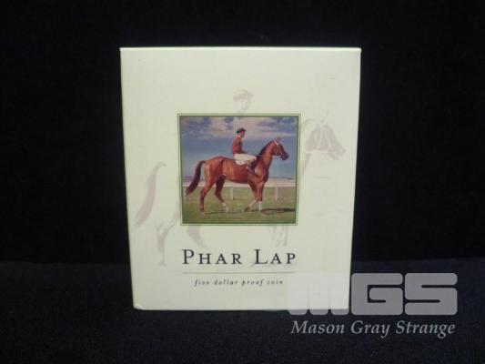 PHAR LAP $5.00 PROOF COIN IN DISPLAY CASE