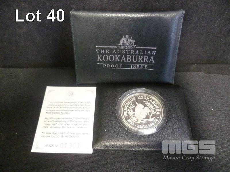 1993 AUST FINE SILVER 1 TROY OZ "KOOKABURRA" UNC COIN, COA 1301 IN WALLET