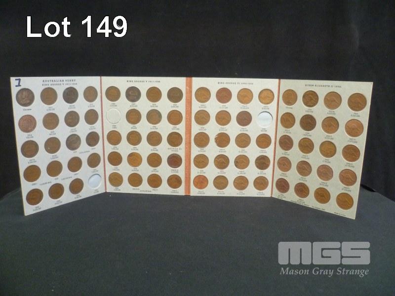 1911- 1964 AUST PENNYS SET LESS 1930-25-46 77 COINS MIXED GRADES