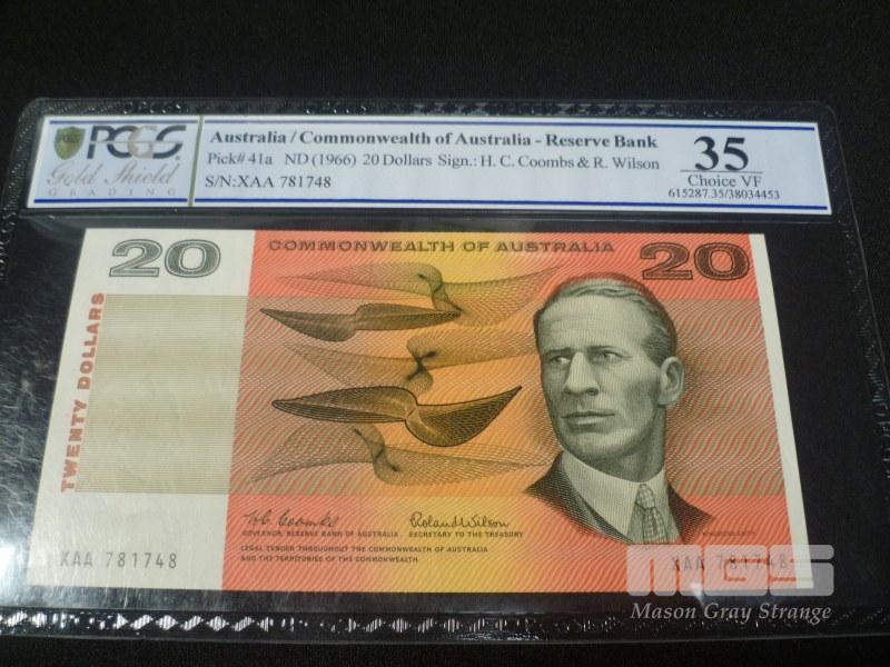 1966 1ST PREFIX 20 DOLLAR NOTE"XAA" PCGS GRADED VF