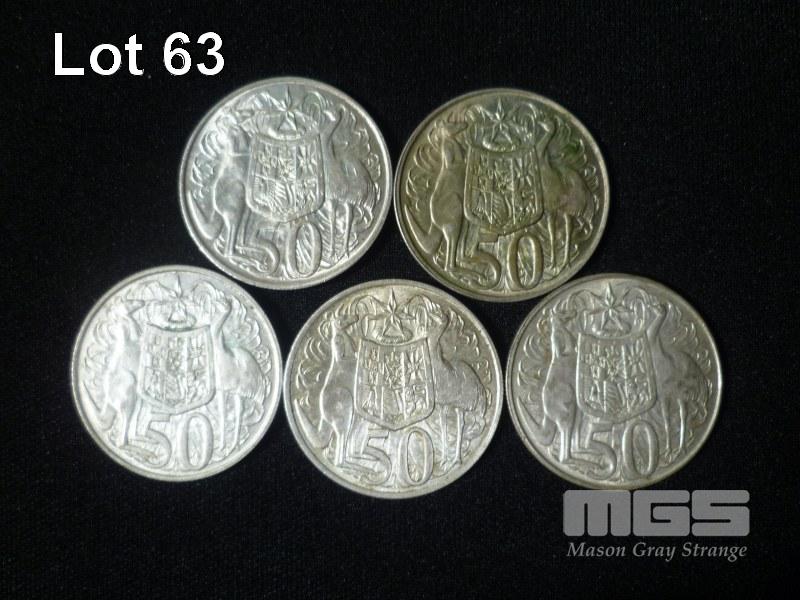 5 X 1966 AUSTRALIAN ROUND 50 CENT PIECES